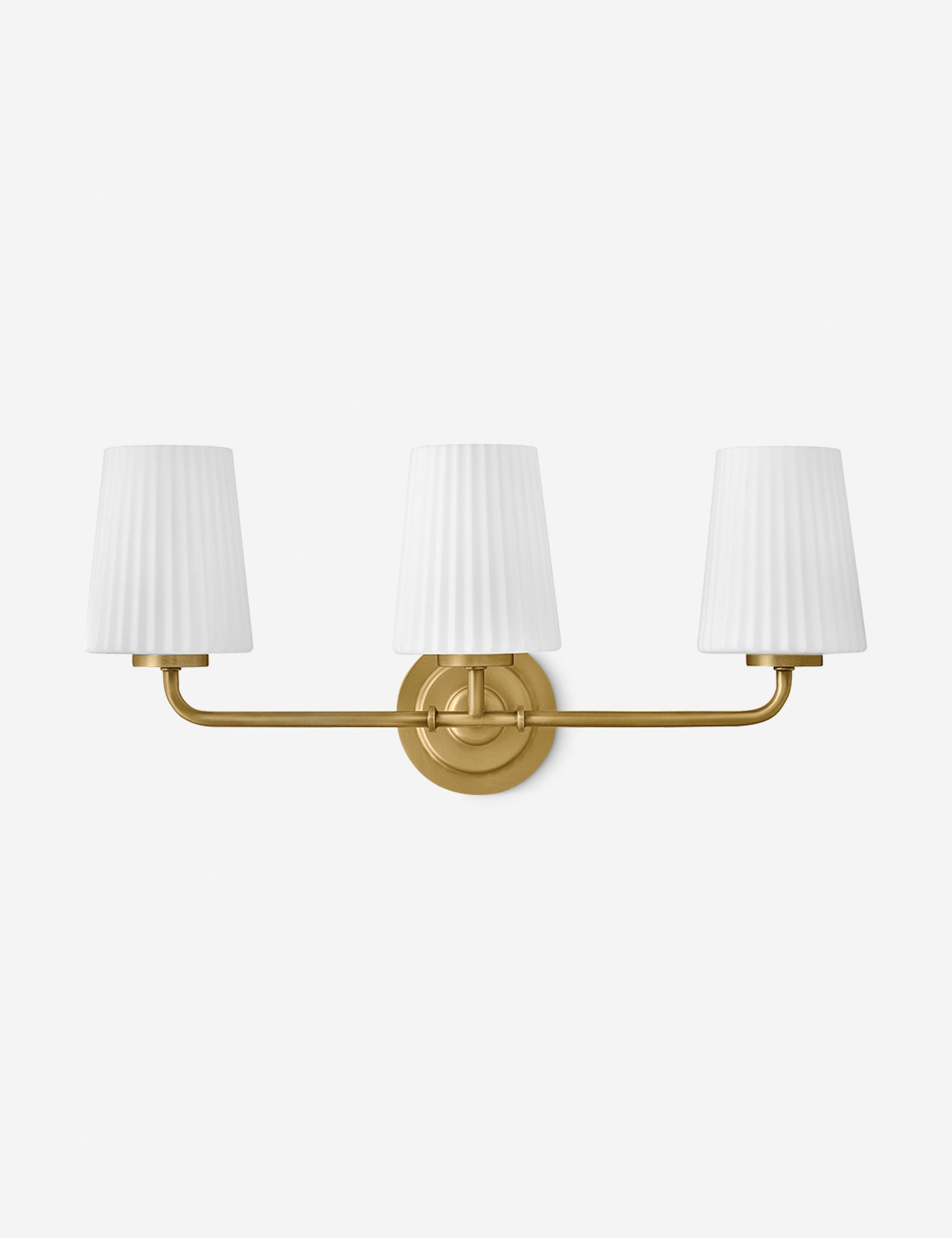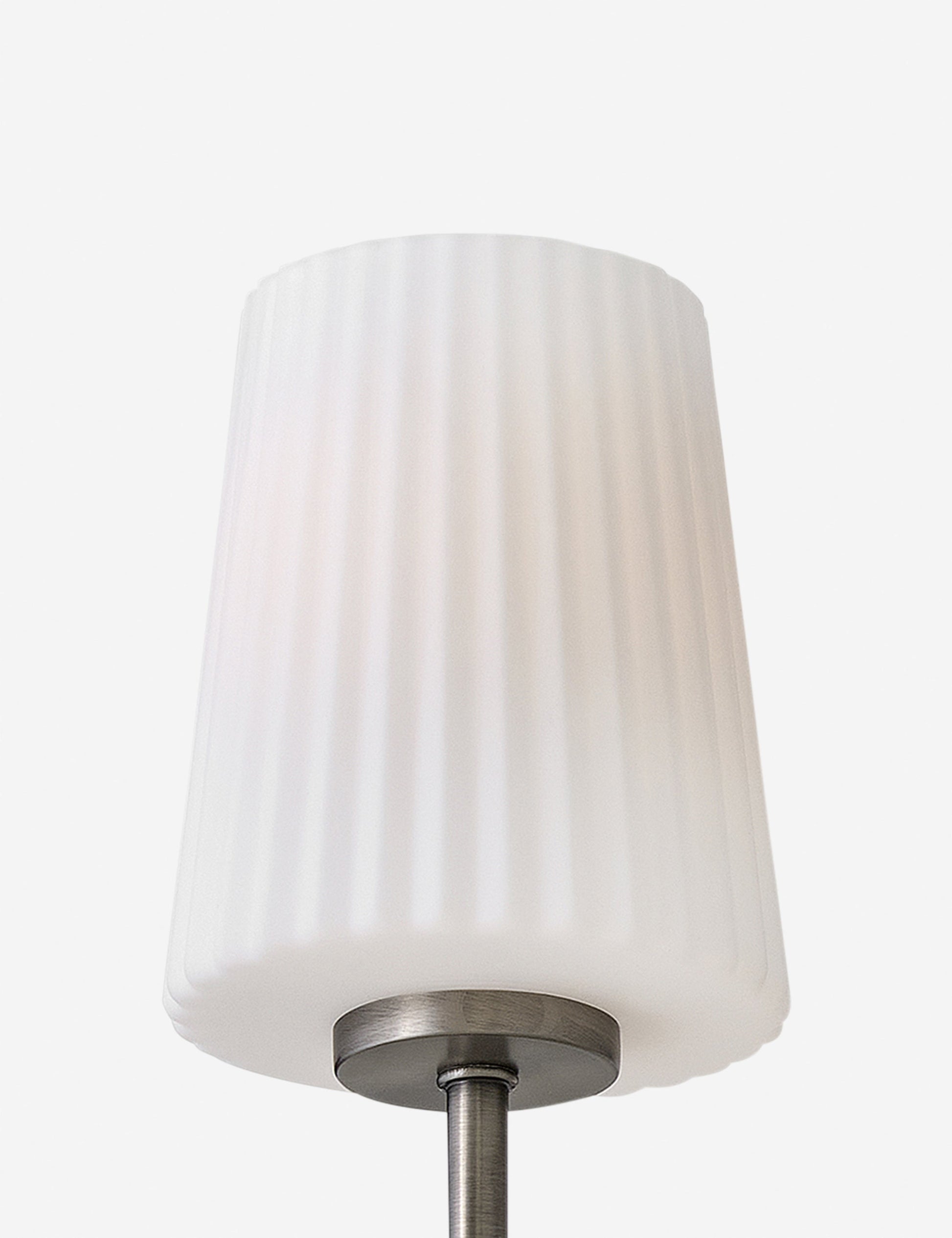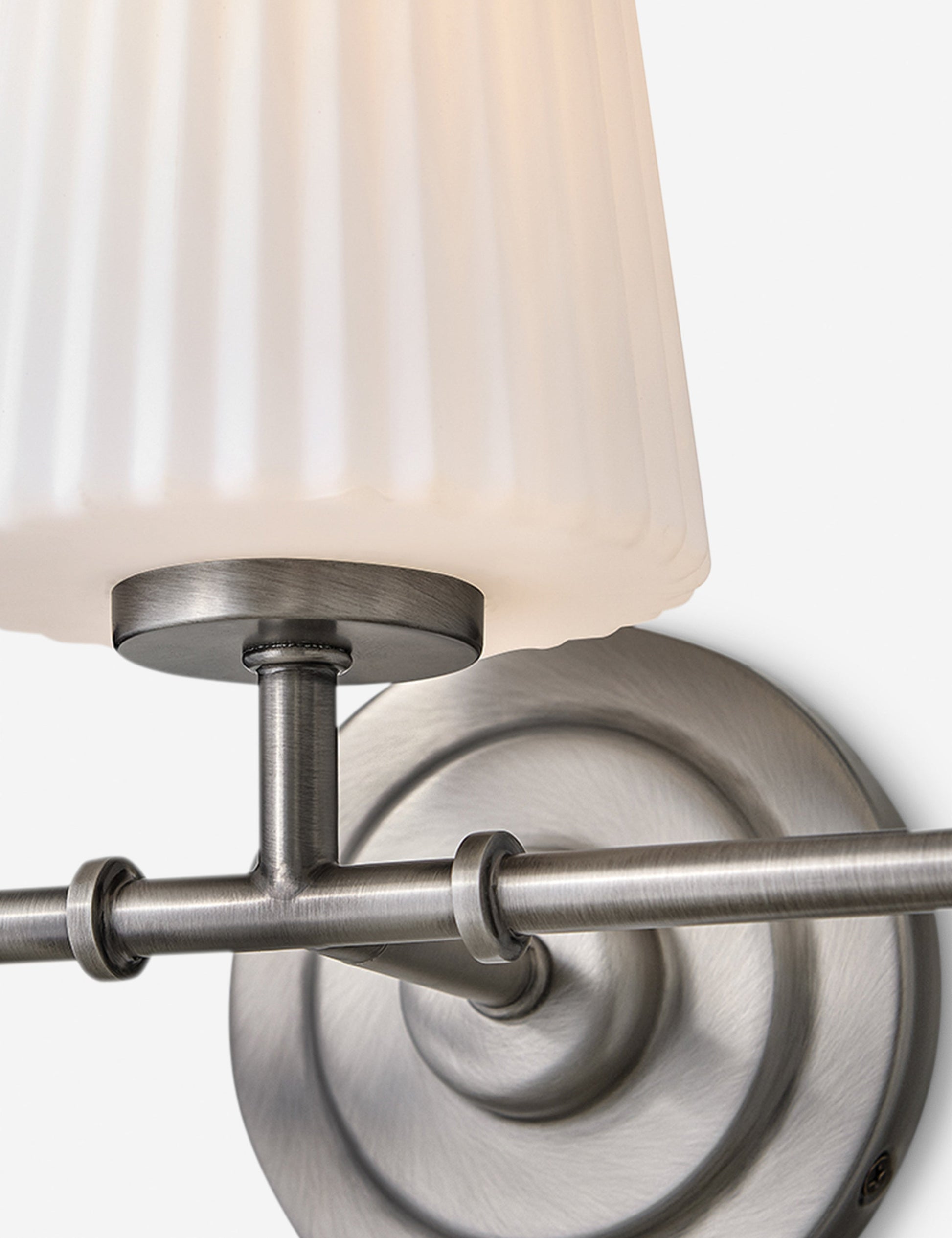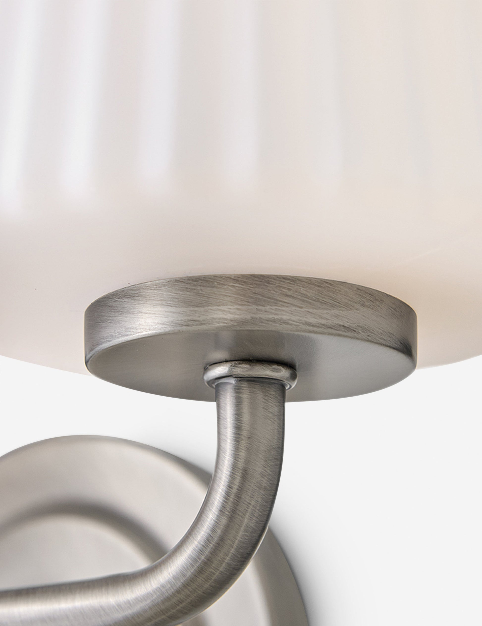 L'applique Banbury allie élégance intemporelle et modernité. Ses abat-jour en verre opale plissé s'associent à des détails fins et linéaires pour créer une silhouette raffinée. Montée en applique ou en éclairage de coiffeuse, elle apportera une touche de sophistication à n'importe quel espace.