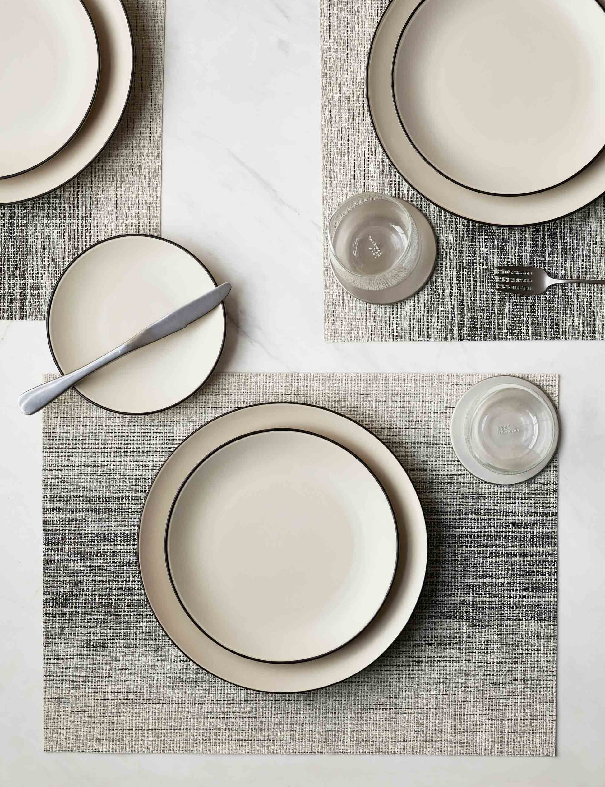 Cet ensemble de sets de table moderne offre une déclaration subtile pour votre paysage de table de luxe avec un effet ombré dans le tissage panaché, ajoutant à la fois texture et dimension.