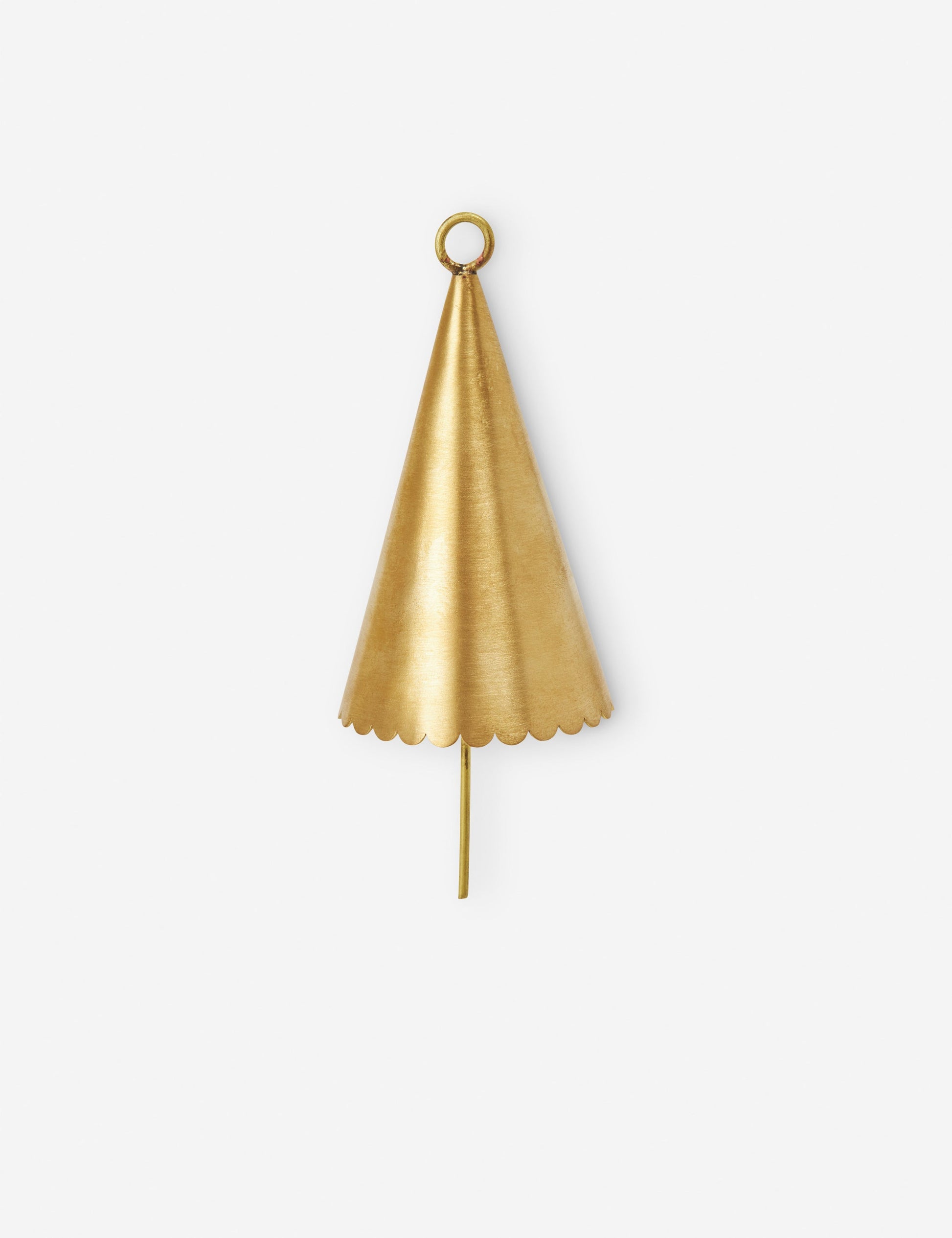 Le laiton massif au poli mat confère à ces cloches coniques une lumière chaleureuse et discrète. Leur bord festonné apporte une touche moderne et intemporelle à votre décoration de Noël.