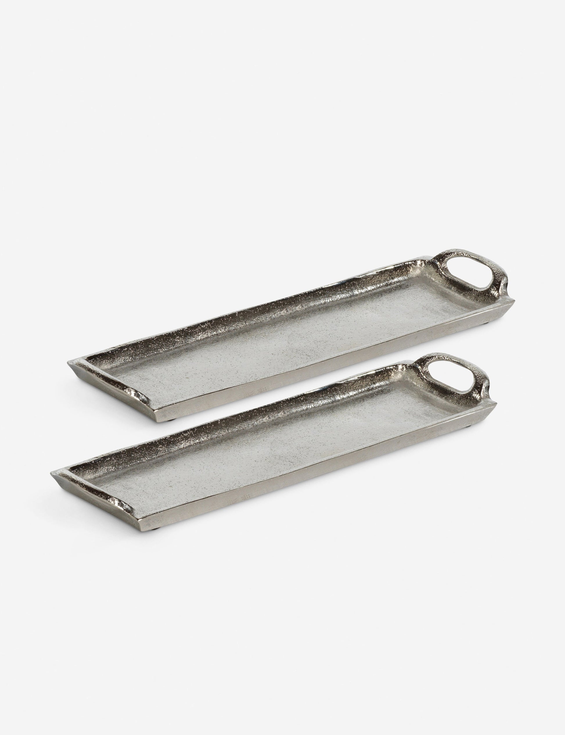 Une finition nickelée et des poignées découpées confèrent aux plateaux Everton une touche chic et industrielle. Disposez-les sur une console ou une table basse pour sublimer vos créations d'une touche d'élégance.