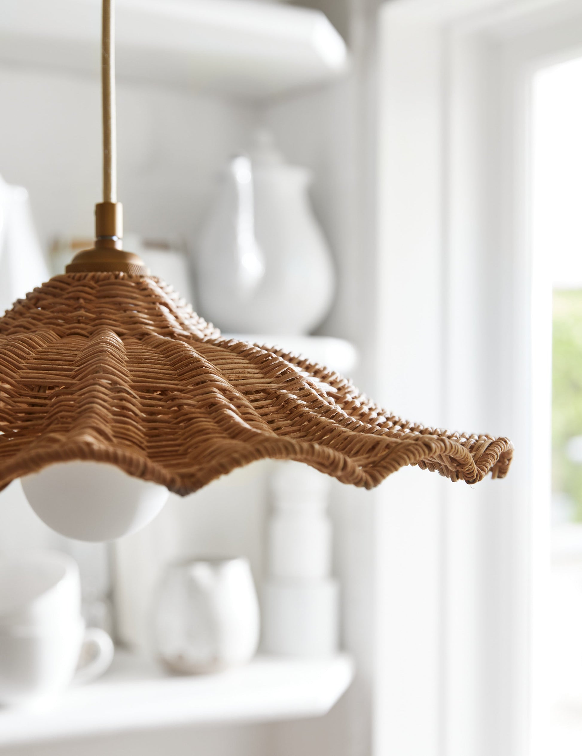 Tissée à la main avec des détails complexes, la suspension Helma apporte une touche moderne à l'influence victorienne. Son abat-jour festonné filtre la lumière, apportant chaleur et texture naturelles. Nous adorons cette suspension pour apporter du charme à une entrée ou un coin repas.