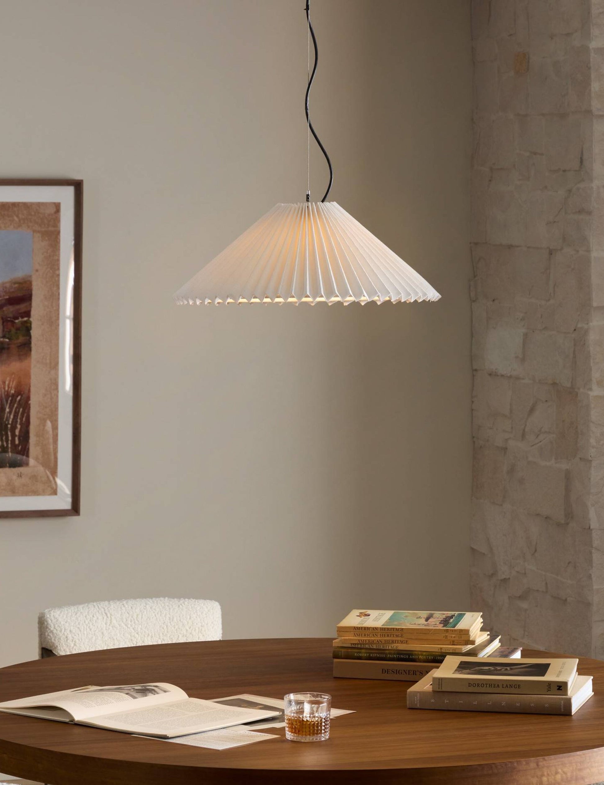 Un élégant abat-jour plissé confère à la suspension Lewes son style intemporel d'inspiration française. Suspendu à un simple cordon, l'abat-jour crème diffuse la lumière avec une élégance naturelle, créant ainsi un plafonnier polyvalent pour les cuisines, les salles à manger ou les couloirs.