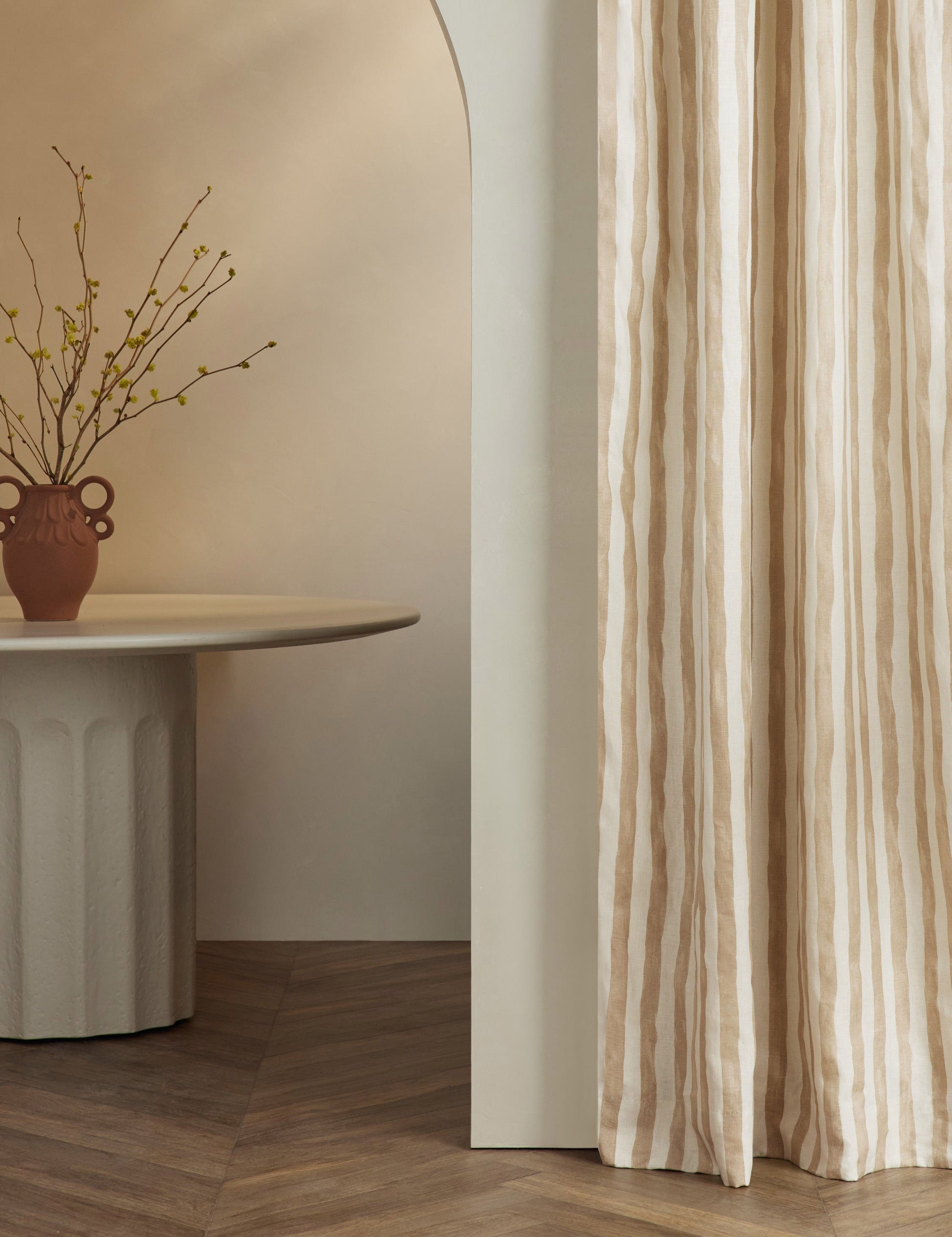 Adoptez un style ton sur ton tout en apportant une touche d'éclat avec ce rideau au design à la fois équilibré et moderne. Le motif à rayures picturales est idéal pour ajouter une touche visuelle à la pièce tout en reflétant une esthétique aux accents organiques. Ce rideau est issu de notre collaboration exclusive avec Sarah Sherman Samuel et reprend toutes les caractéristiques de son style chaleureux et raffiné.