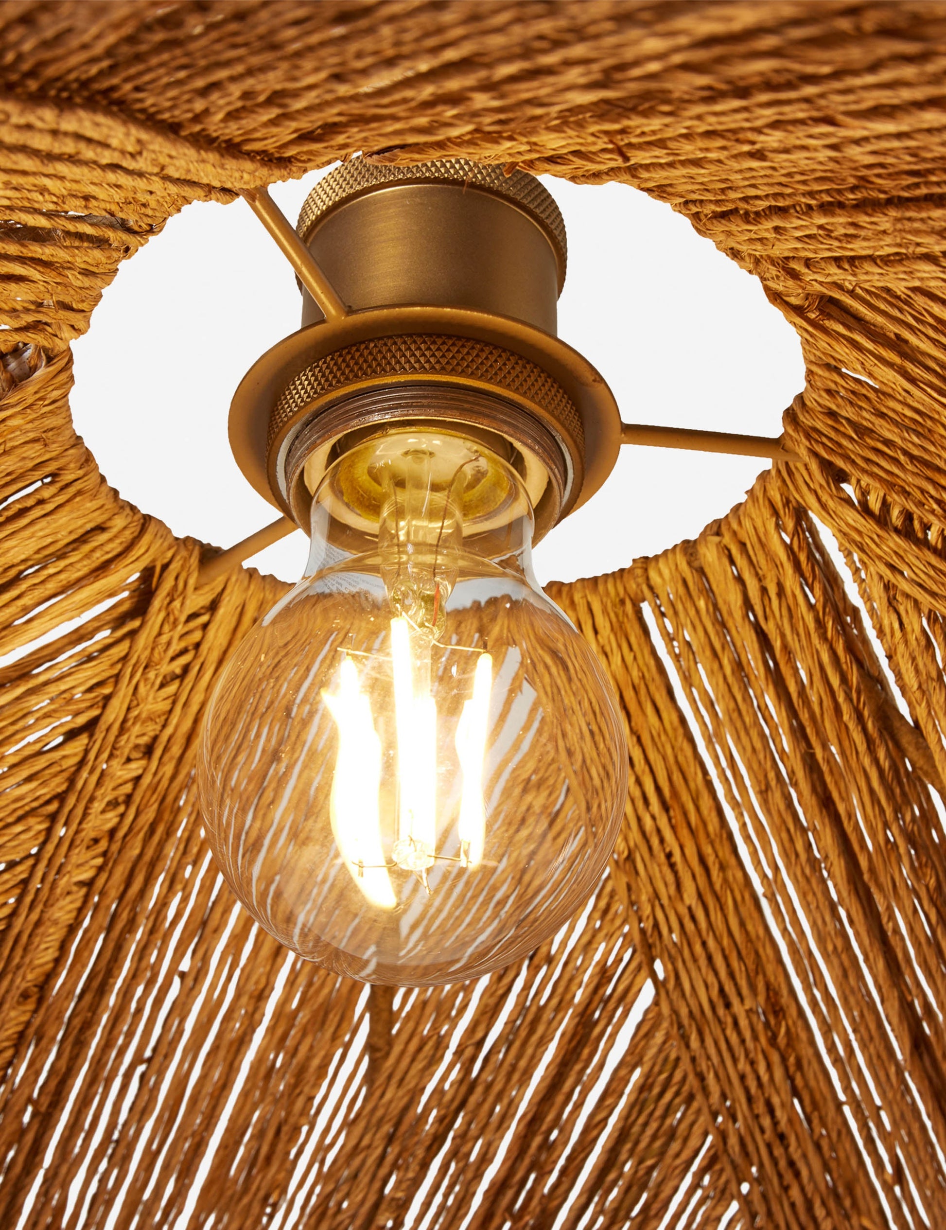 La suspension Samina s'impose avec son large abat-jour fuselé. Le jute tissé à la main lui confère une texture naturelle et une chaleur naturelle, tandis que des touches de laiton subliment son style avec une touche d'élégance. Cette suspension est parfaite pour apporter une touche de sophistication décontractée à une salle à manger, une cuisine ou un salon.