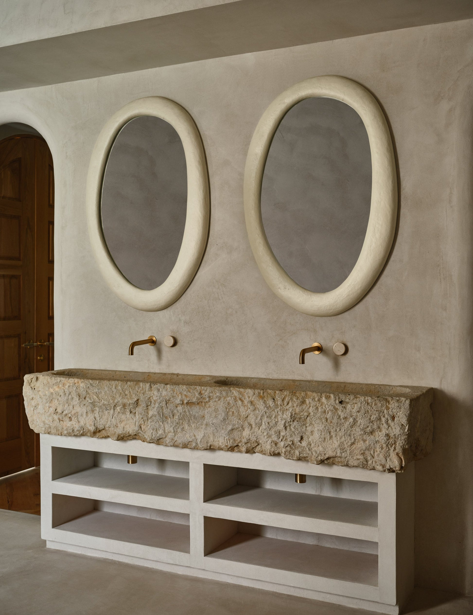 Des courbes douces et une finition en plâtre confèrent au miroir Simone son allure naturelle. Son cadre ovale, à la fois sculptural et sobre, offre un design qui s'intègre harmonieusement à la pièce. Installez ce grand miroir mural dans une entrée, une chambre ou un salon pour apporter luminosité et profondeur, avec une touche subtile de raffinement.