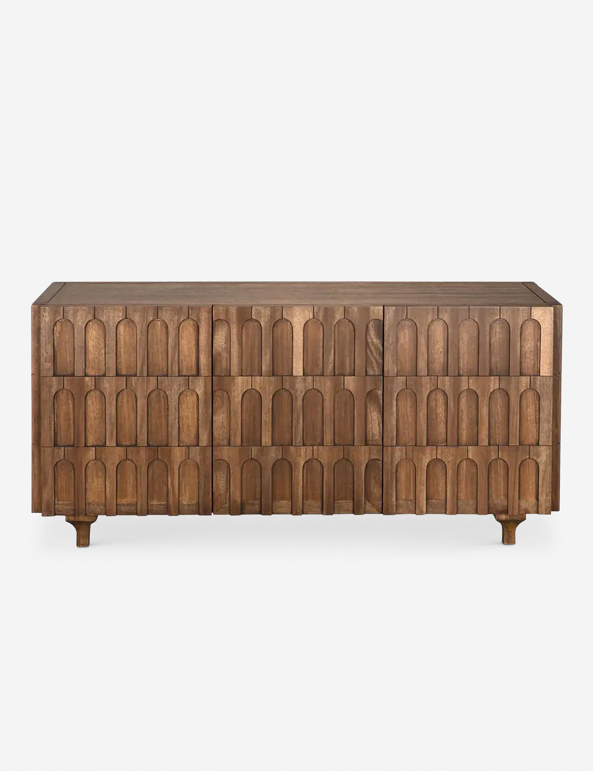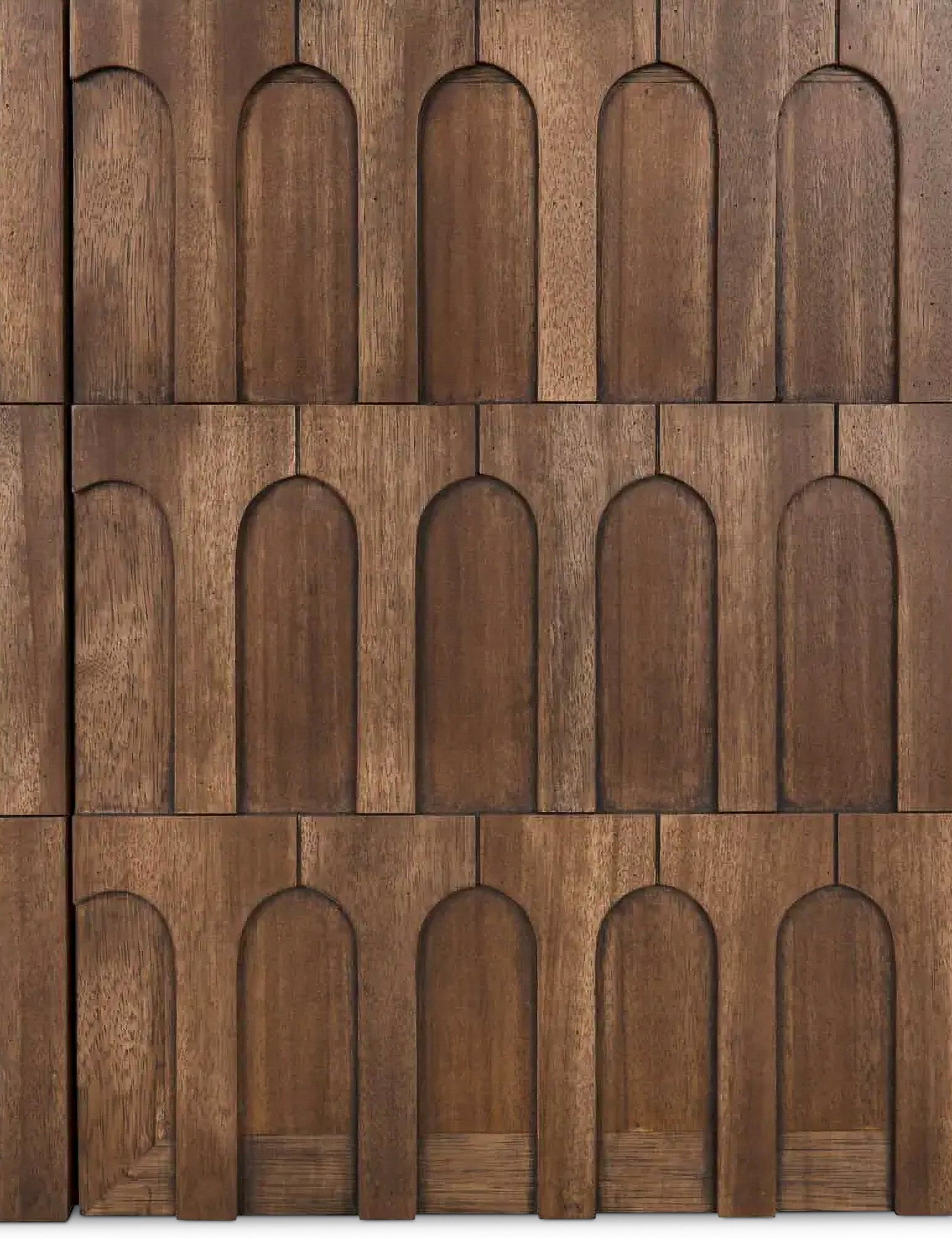Affichant une texture et une forme remarquables, le buffet Stader apporte une touche architecturale à vos rangements. Avec sa riche finition noyer, sa façade à motifs crée un rythme visuel tout en dissimulant de généreuses étagères. Ce buffet est un élément de décoration raffiné pour la salle à manger comme pour le salon.