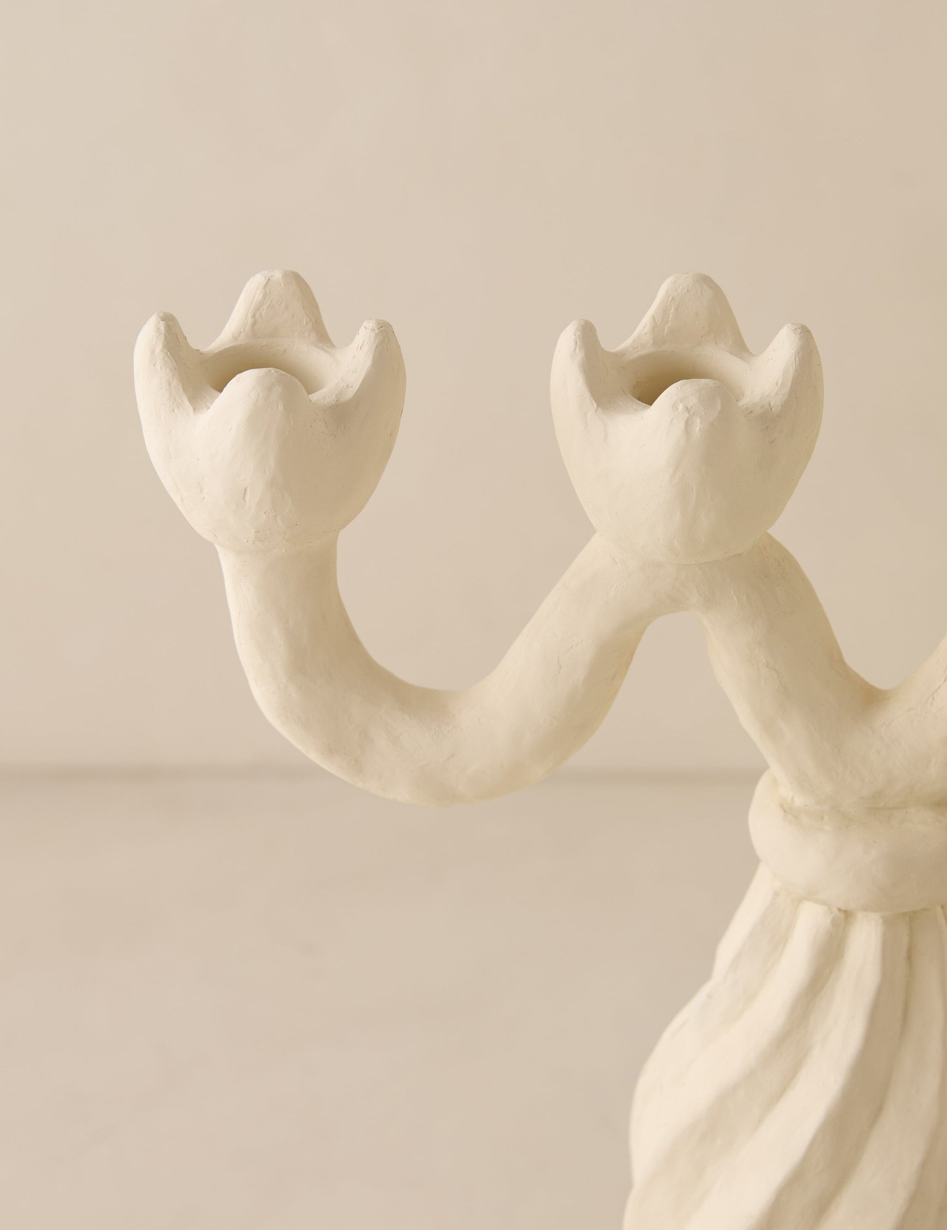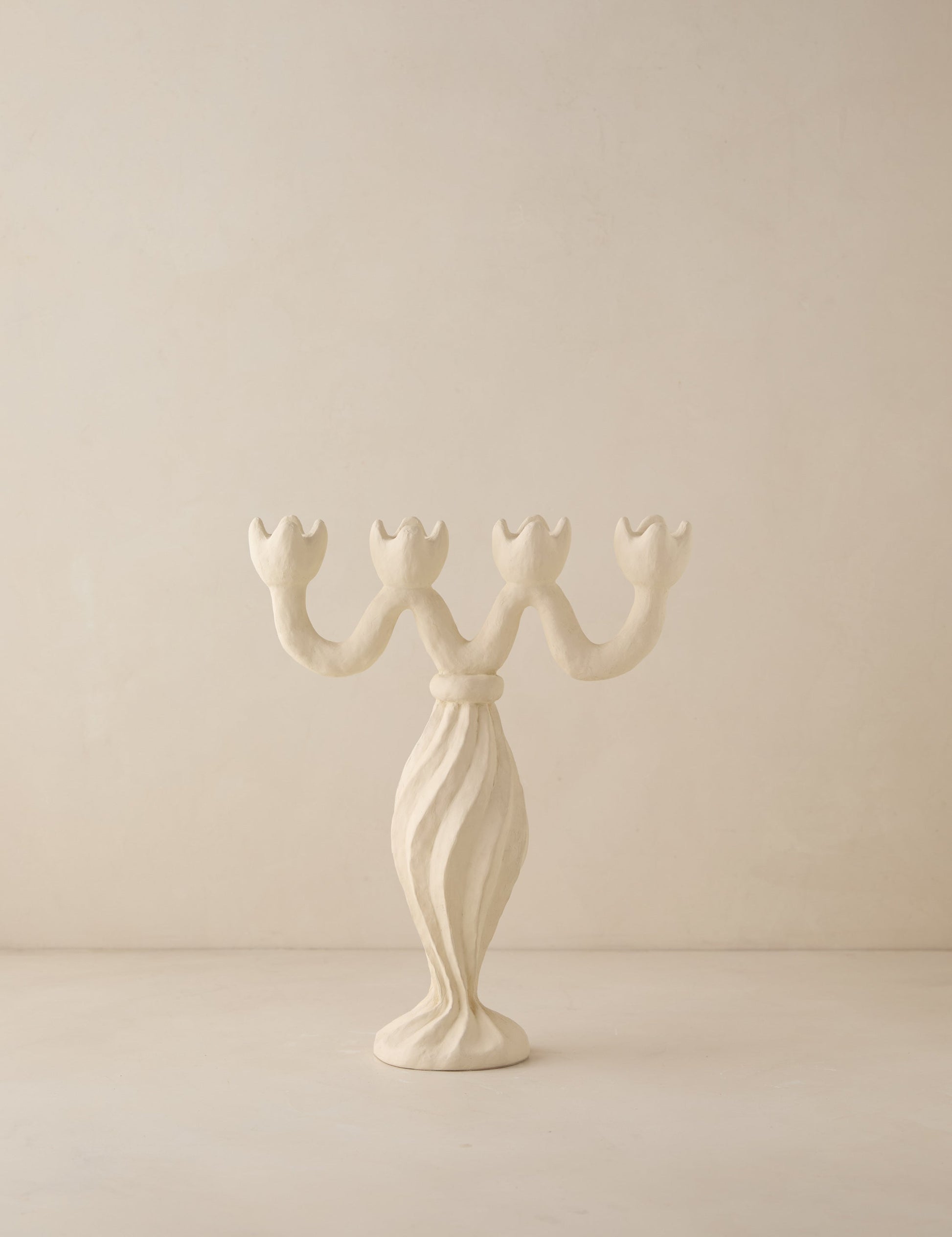 Ce candélabre délicatement sculpté offre une touche d'élégance. Avec ses quatre bras recourbés et sa base cannelée, il offre une pièce maîtresse au charme intemporel. Issue de notre collaboration exclusive avec Sarah Sherman Samuel, cette pièce arbore toutes les caractéristiques de son style chaleureux et raffiné.