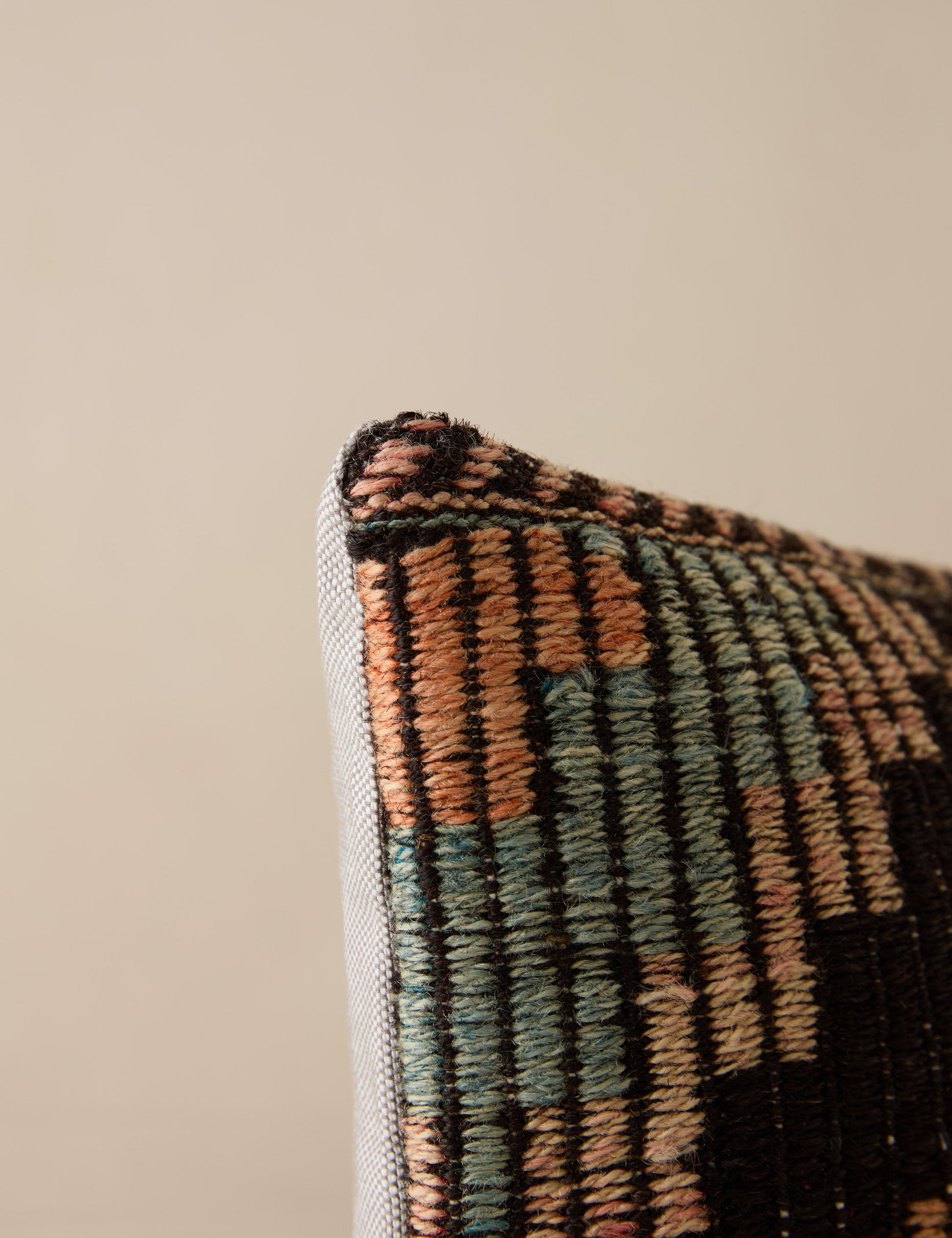 Un coussin vintage en laine apporte instantanément chaleur et caractère, offrant une superbe touche de superposition à votre décoration. Richement texturé et riche en motifs, ce coussin lombaire évoque une découverte de voyages lointains.