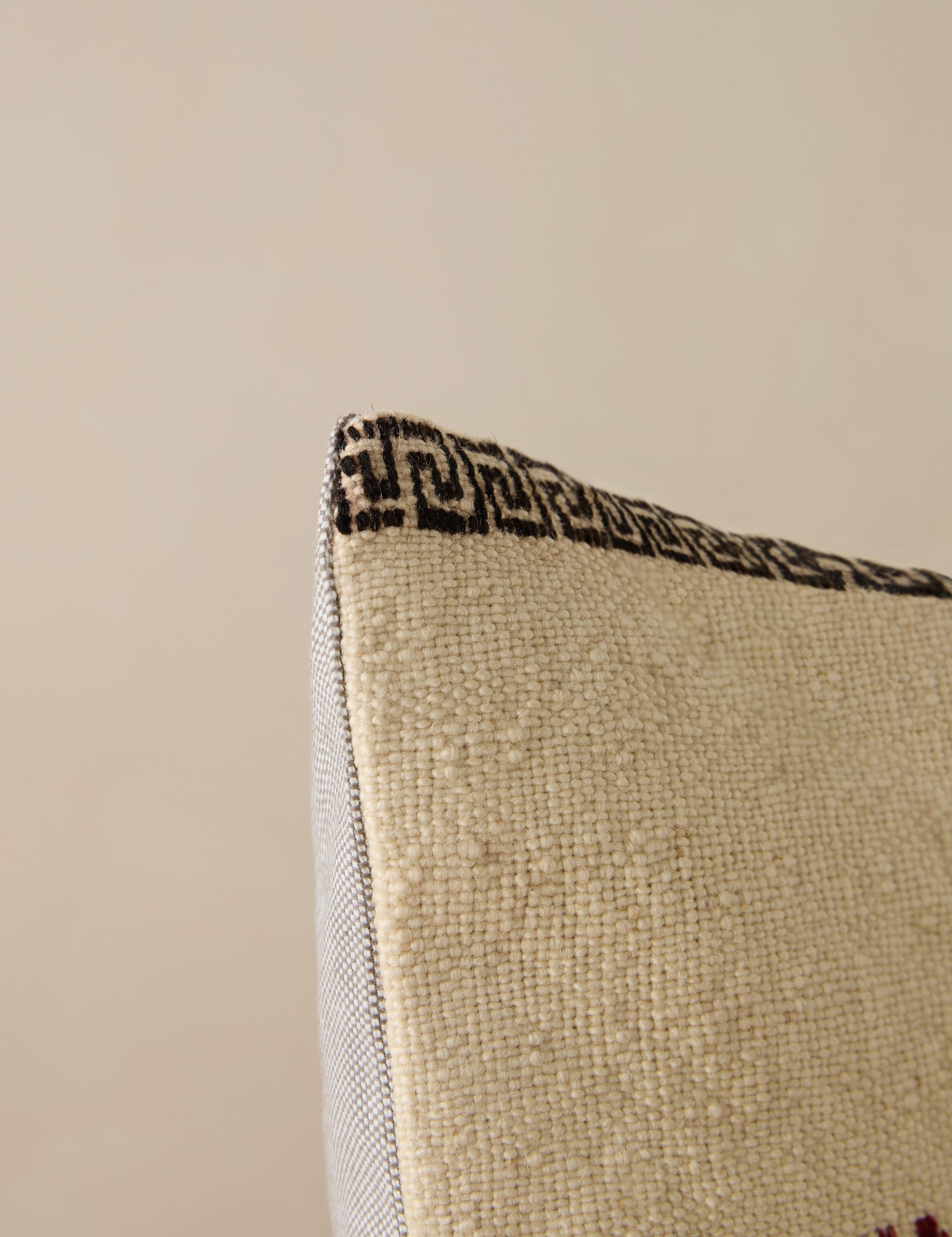 Un coussin vintage en laine apporte instantanément chaleur et caractère, offrant une superbe touche de superposition à votre décoration. Richement texturé et riche en motifs, ce coussin lombaire évoque une découverte de voyages lointains.