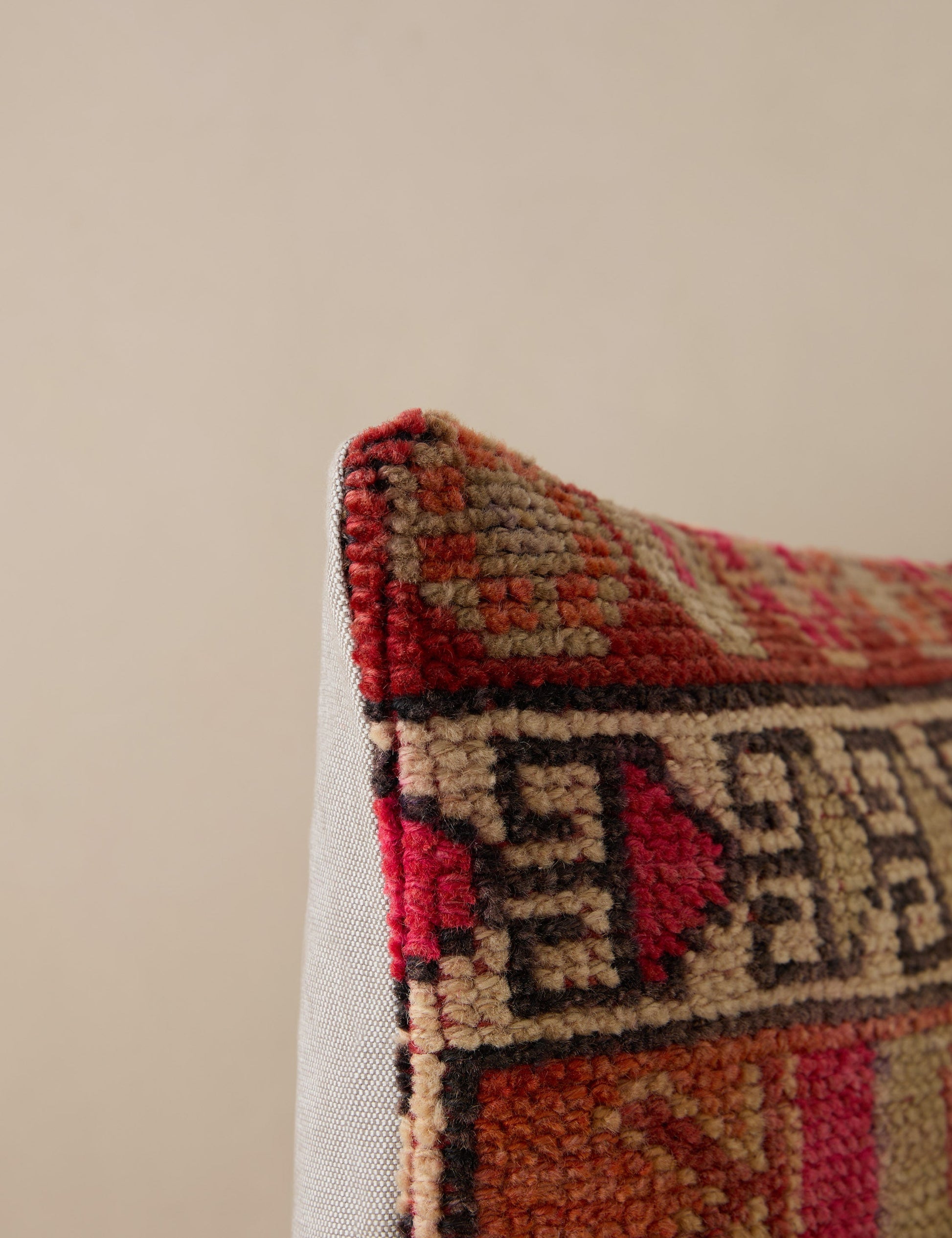 Un coussin vintage en laine apporte instantanément chaleur et caractère, offrant une superbe touche de superposition à votre décoration. Richement texturé et riche en motifs, ce coussin lombaire évoque une découverte de voyages lointains.