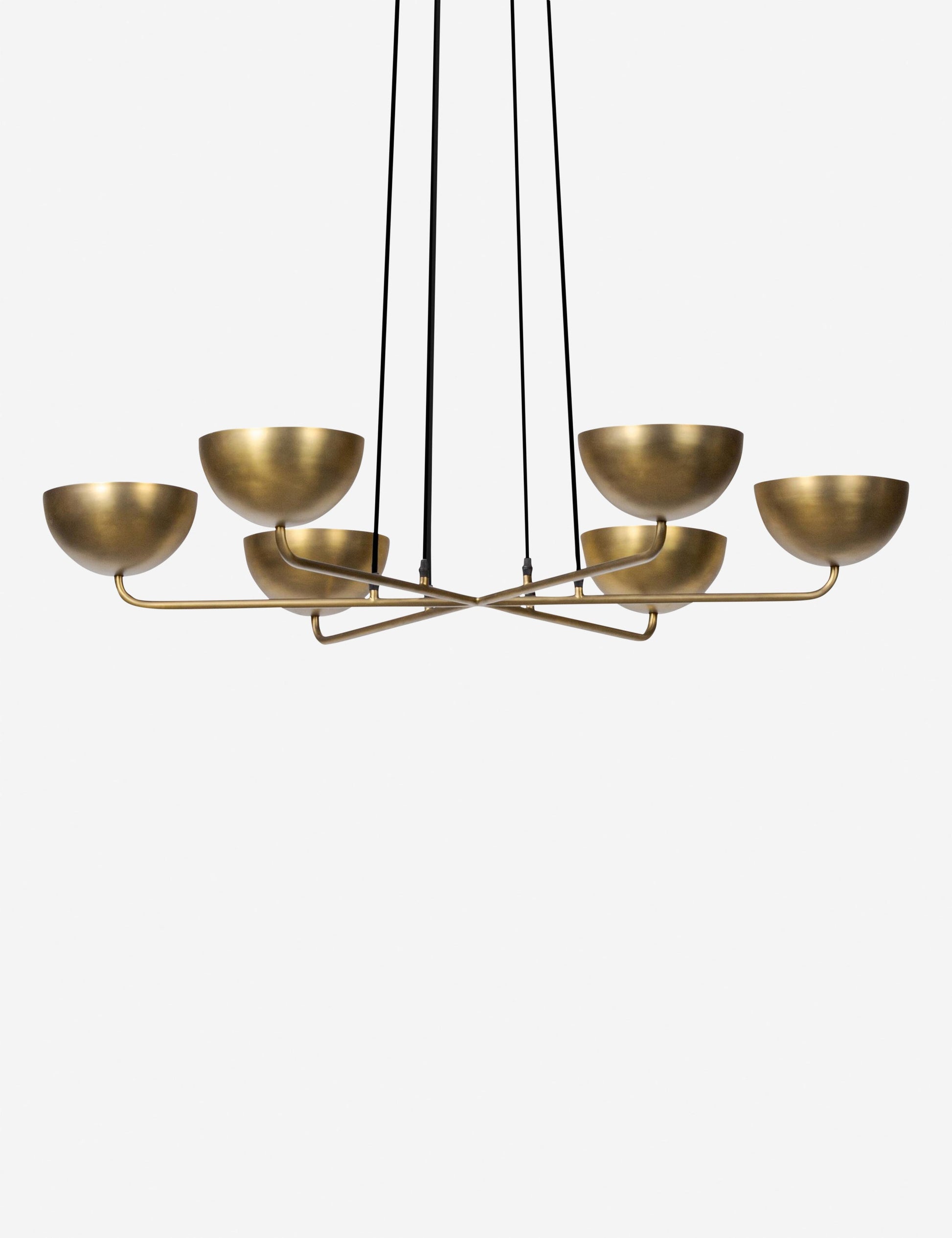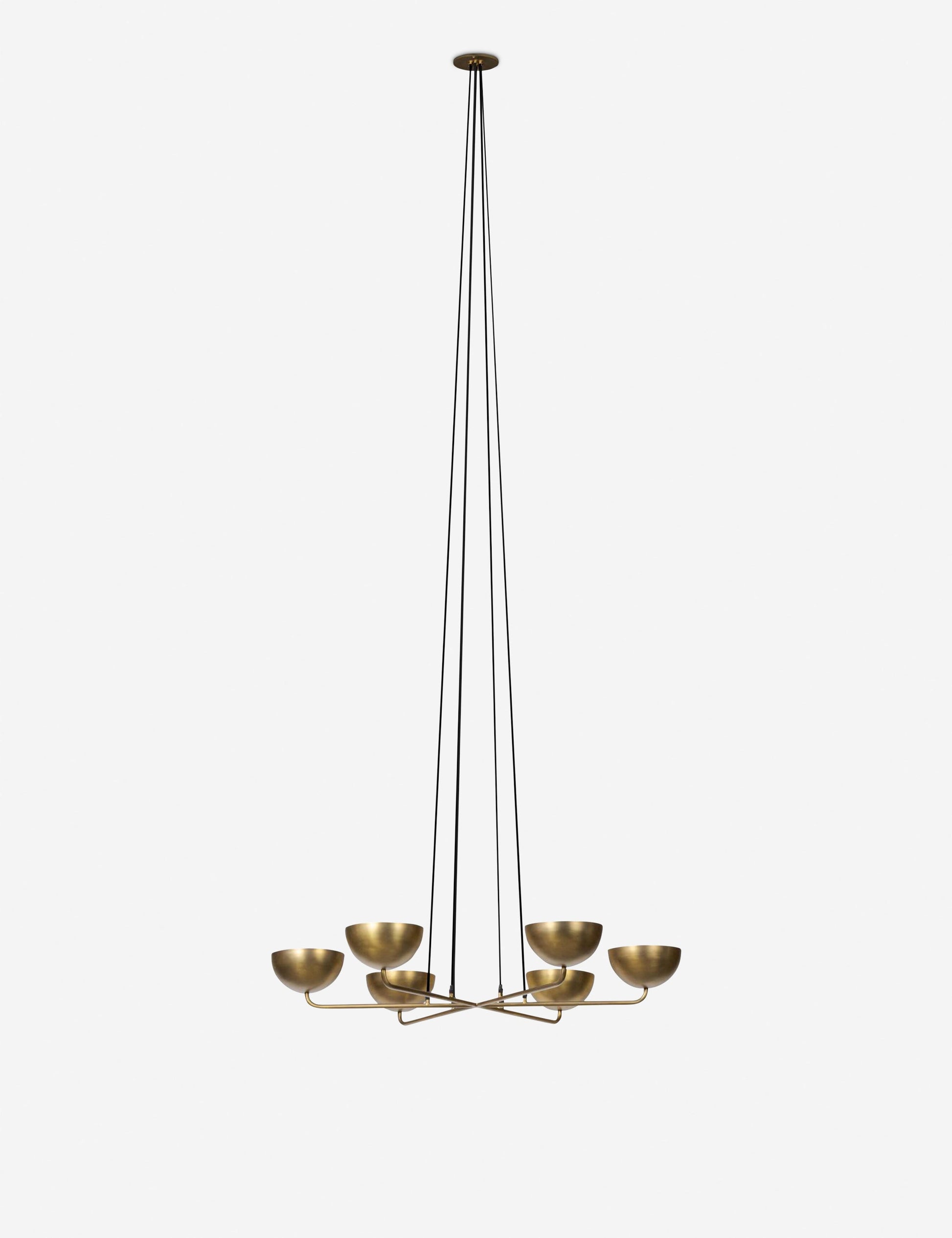 Le lustre Winfield est composé de six coupelles en laiton bruni posées sur une structure minimaliste suspendue à des cordons réglables en tissu noir. Les ampoules imbriquées diffusent une lumière chaleureuse, donnant le ton à une salle à manger ou un espace de vie raffiné. Associez-le à un généreux plafonnier pour une allure à la fois saisissante et harmonieuse.